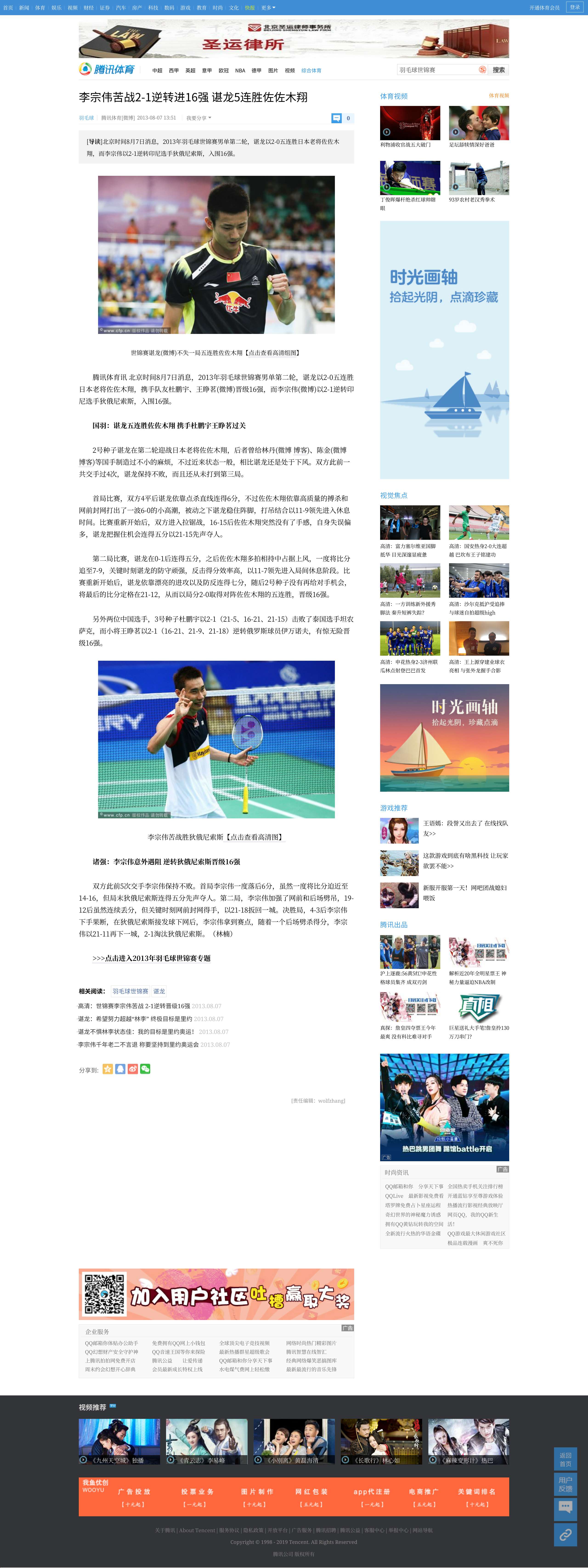 谌龙是自控能力非常强的球员,优点突出,缺点也特别明显。(中国前羽毛球运动员 林江利评)